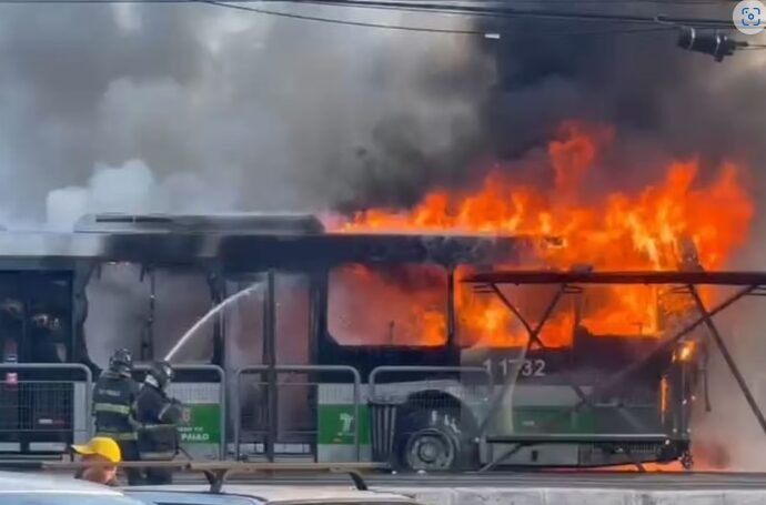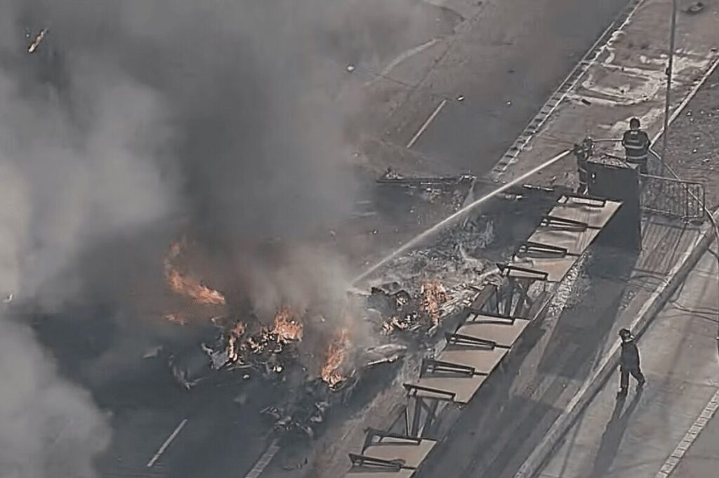 O avião tinha destino de Porto Alegre e atingiu um ônibus, causando incêndio e destruição do mesmo.
