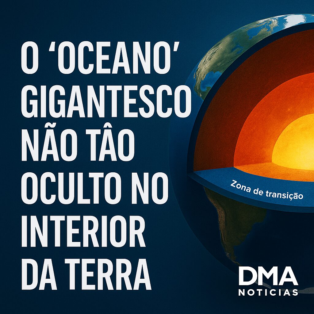Nos últimos anos, manchetes chamativas passaram a circular afirmando que existe um “oceano preso” a cerca de 700 quilômetros abaixo da superfície da Terra. A ideia impressiona, mas costuma ser contada de forma simplificada — e, muitas vezes, equivocada. O que a ciência realmente descobriu não é um oceano líquido como o Atlântico ou o Pacífico, mas sim um gigantesco reservatório de água quimicamente armazenada dentro de minerais do manto, especialmente um chamado ringwoodita.