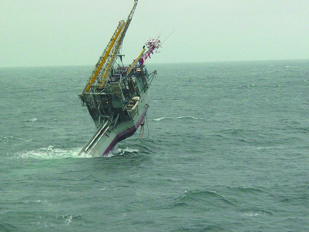 O processo é realizado pela inundação de seus tanques, sendo que o lastro de 91 metros submersos, proporciona uma plataforma estável e que não oscile no meio das ondas do mar. Para retornar a posição horizontal, são utilizadas bombas de ar comprimido, que são acionadas para forçar a ejeção da água nas câmaras inundadas.