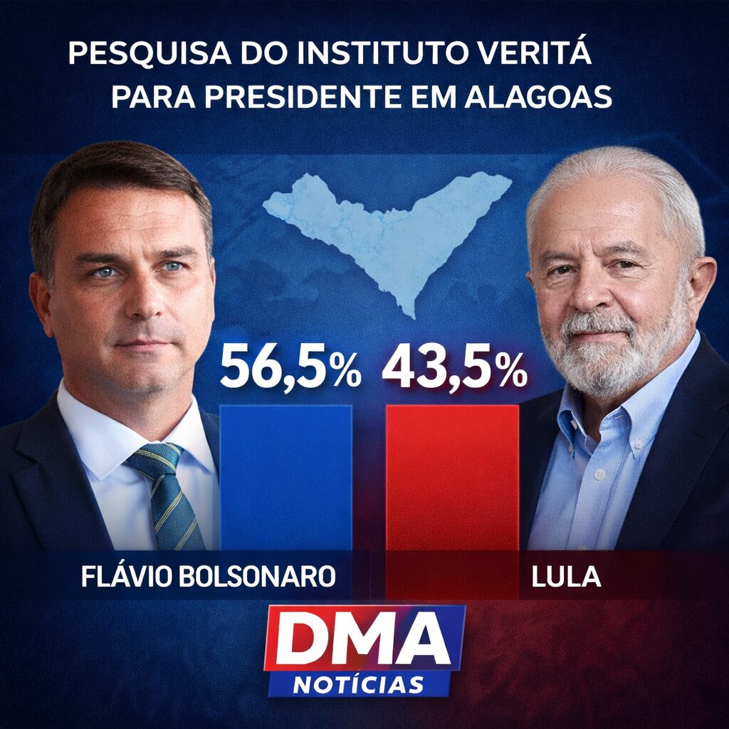Levantamento do Instituto Veritá divulgado no fim de março mostra Flávio Bolsonaro numericamente à frente de Lula na corrida presidencial em Alagoas, reforçando o ambiente de desgaste do governo e a competitividade do campo bolsonarista para 2026.